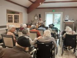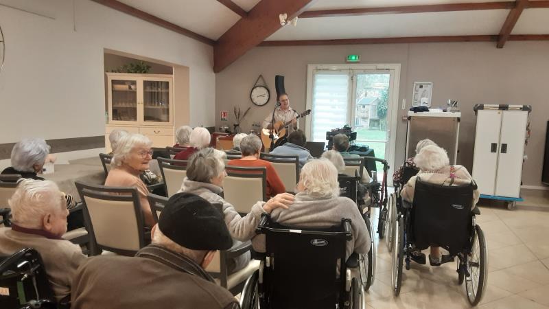 Ce jour, les murs de notre établissement ont résonné au son d'une jolie voix : Monsieur Fériot, qui nous a offert un récital mémorable. Des grands classiques de la chanson française aux airs plus rythmés, nos résidents ont pu s’évader le temps d'un après-midi.
