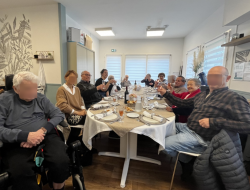Loin du cadre habituel, tout le monde a pu discuter librement et échanger des anecdotes et surtout rire de bon coeur ! Pour accompagner ce repas, nous avons levé nos verres et triquer ensemble, le temps d'un repas le temps semblait s'être arrêté.
