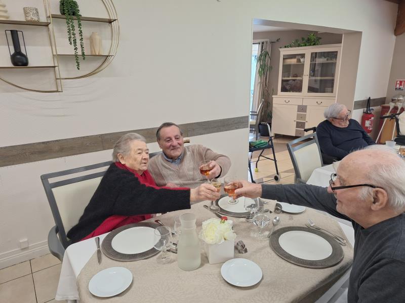 Chaque dimanche nous proposons l"apéritif dominical, aujourd'hui du Pineau des Charentes. Si précieux pour nos résidents, ces moments d'échanges informels permettent à chacun de discuter dans une atmosphère détendue et festive.