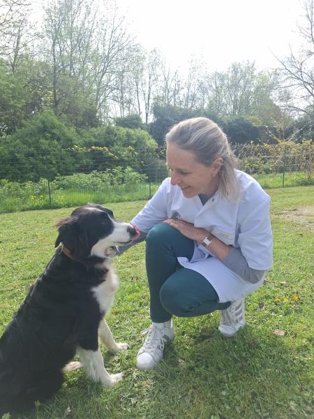 De temps en temps, Dr Ouvry vient travailler accompagnée de sa chienne, pour le plus grand bonheur de tous. Que ce soit auprès- des résidents ou des salariés, la présence de Pénélope apporte immédiatement un vent de douceur et de sourires.